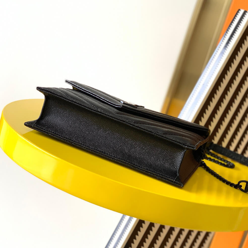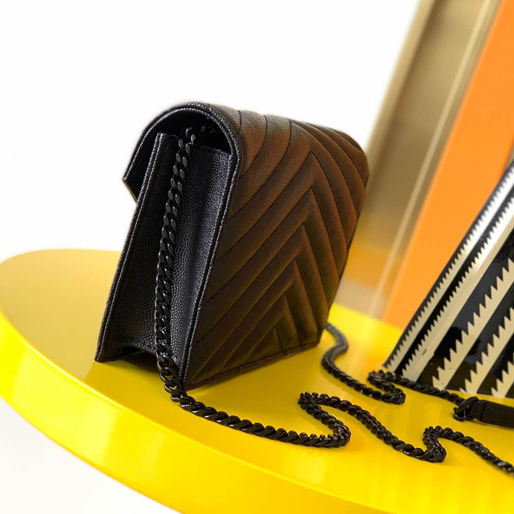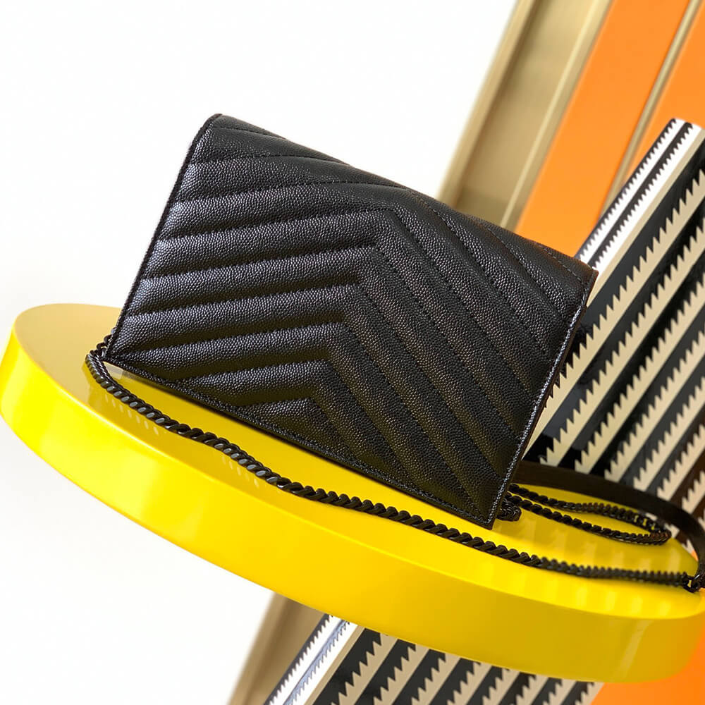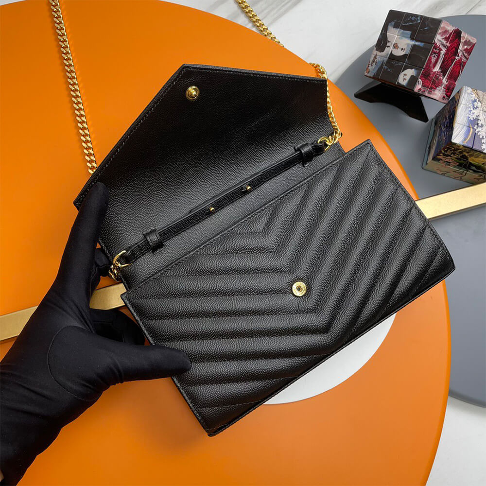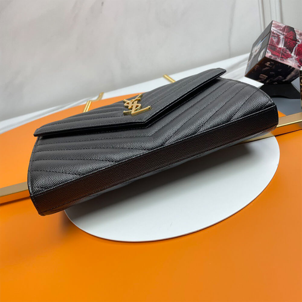 YSL cassandre envelope chain wallet in grain de poudre leather(High-end Grade)