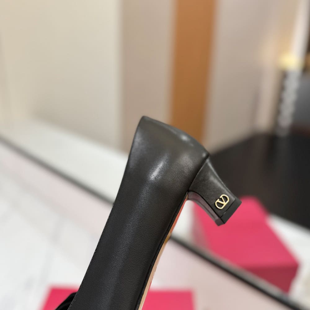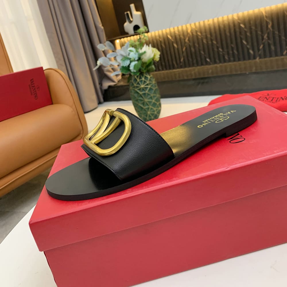 VALENTINO VLOGO SIGNATURE grained cowhide decorative elements slipper sandals (heel height 0.5 cm)